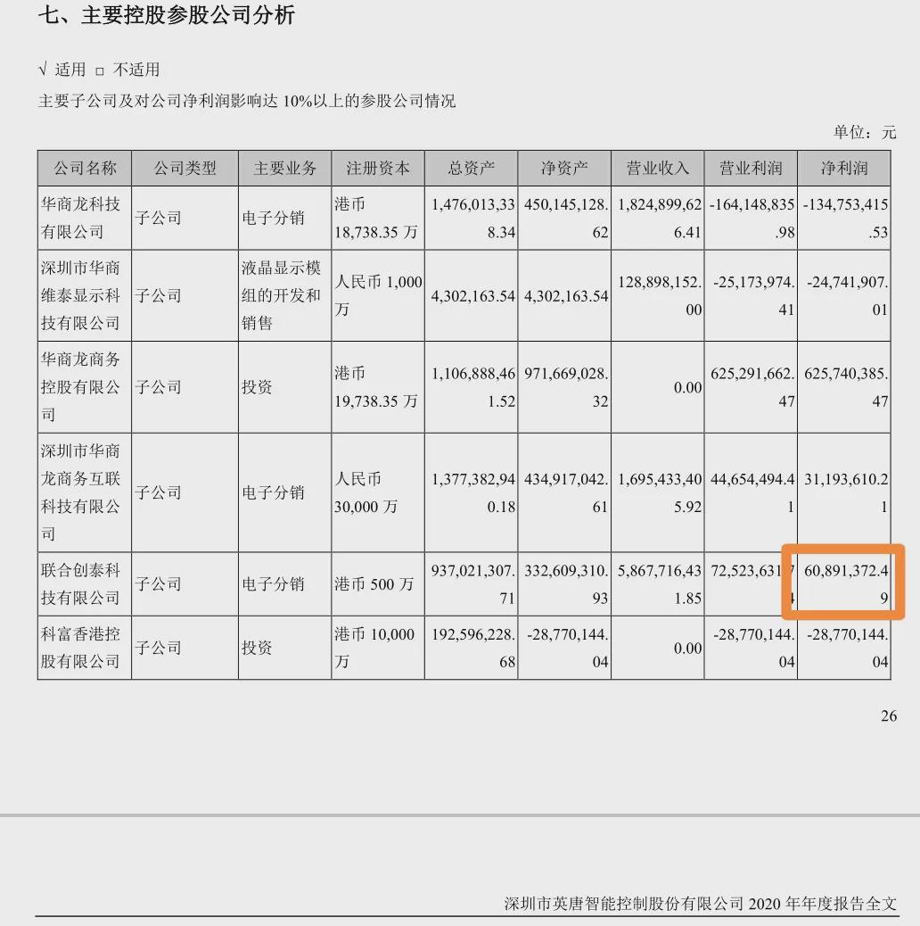 英唐智控为了彻底拿下联合创泰,又在2019年7月花4.6个亿拿下联合创泰20%的股权。