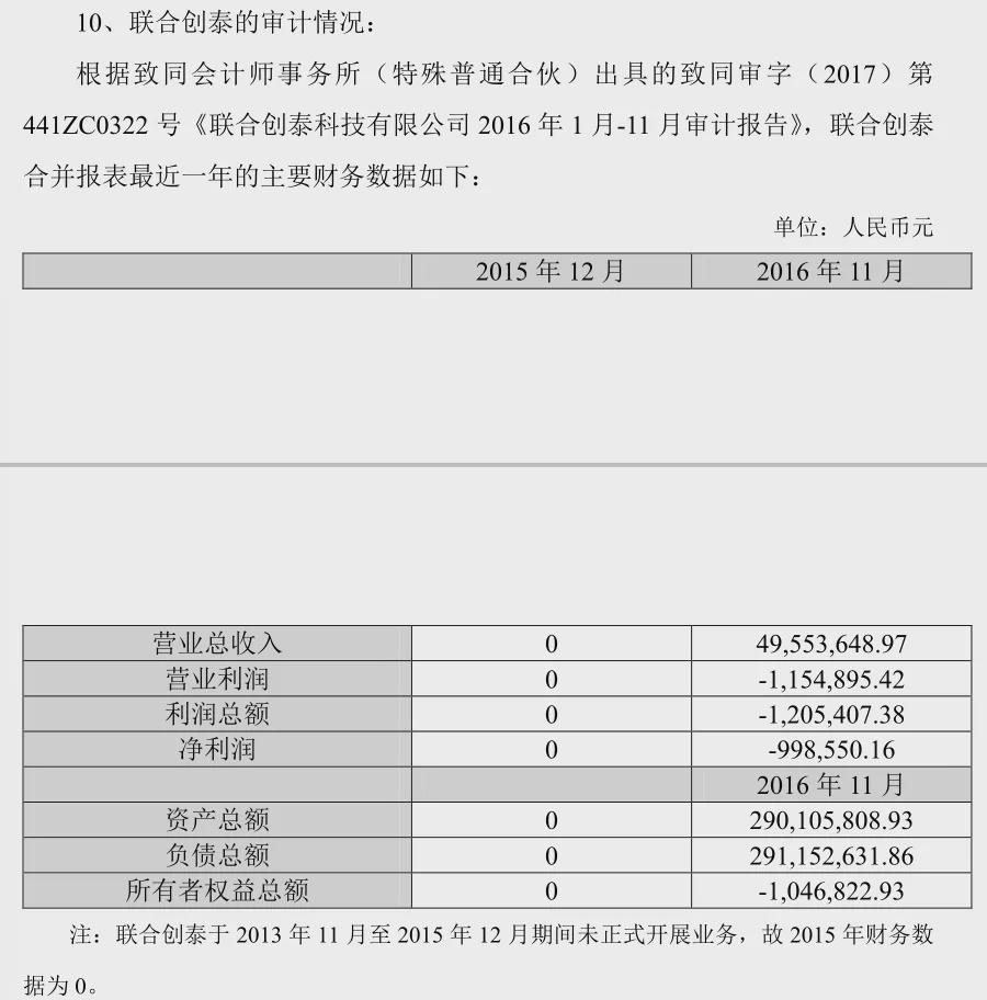 但这时候的联合创泰怎么可能完不成3000万的利润目标?