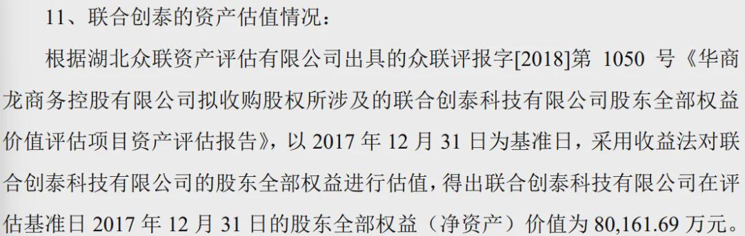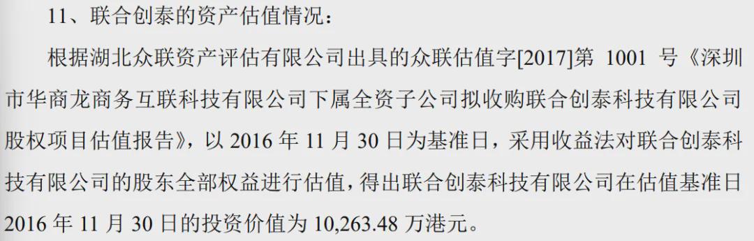 这时候联合创泰的估值达到了24亿多,而它也100%属于英唐智控了。
