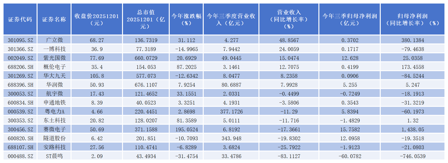 从二级市场表现看,截止12月1日收盘,今年以来,赛微电子、概伦电子、东土科技等3公司股价涨幅均超过80%,位居前三。其中,赛微电子已经成功实现翻倍。从业绩表现看,今年前三季度,广立微、紫光国微、概伦电子、华润微等4家公司营收和利润均实现同比增长。