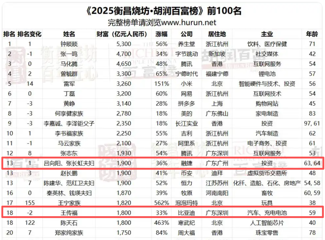 融捷吕向阳夫妇,身家比表弟王传福——比亚迪董事长还厚,在全国富豪榜排名第13名。