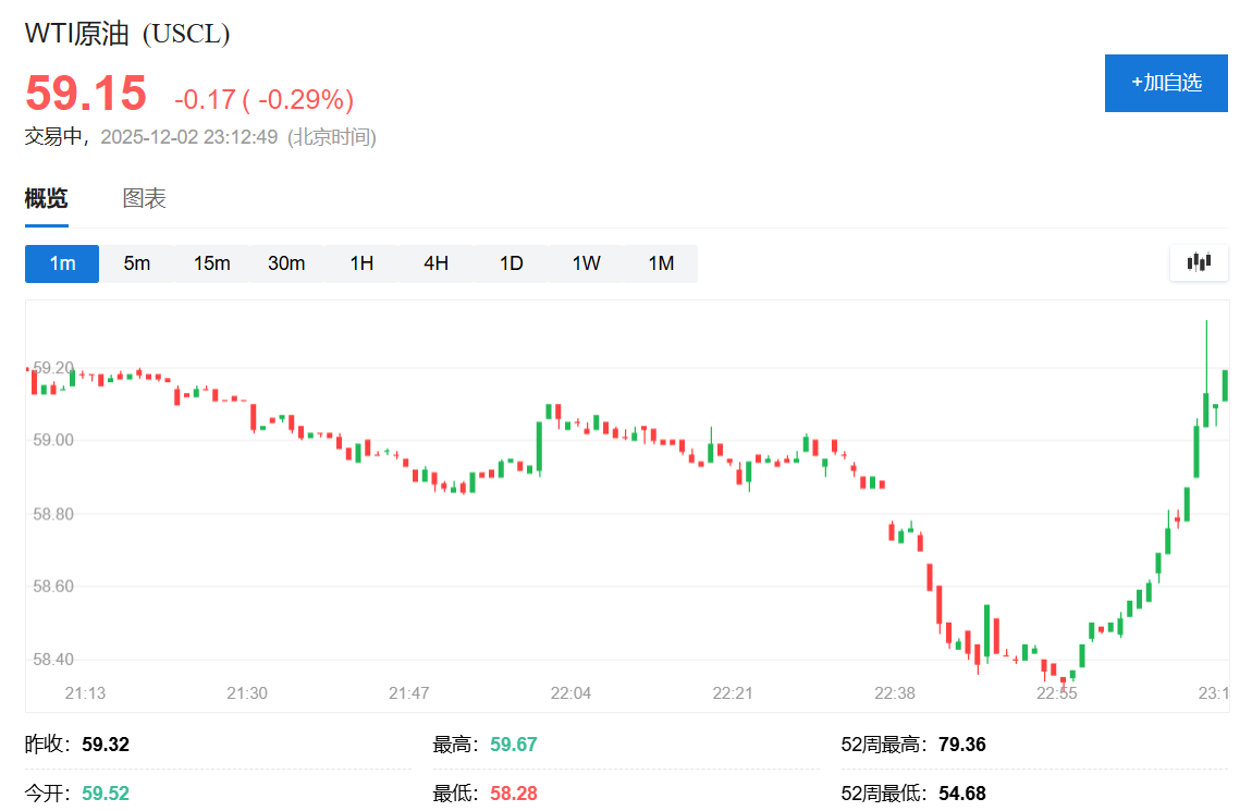 周二,WTI原油期货从58.40美元一线上扬至59.20美元,跌幅收窄至0.3%。布伦特原油期货盘中抹去早些时候1.6%的跌幅,基本持平。交易员密切关注美国旨在结束乌克兰战争的努力能否取得成效。