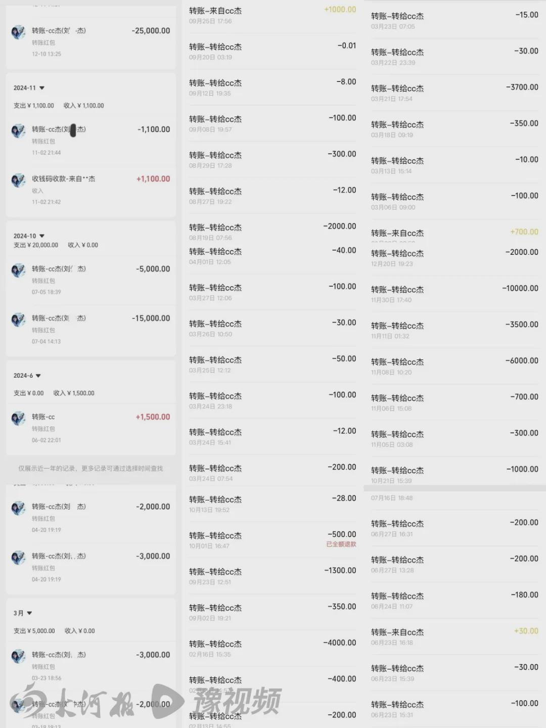 对此,黄佳和黄鹏分别向记者出示多张转账记录,证明女方长期经济支持家庭开支,反驳刘某杰父亲的不实言论。
