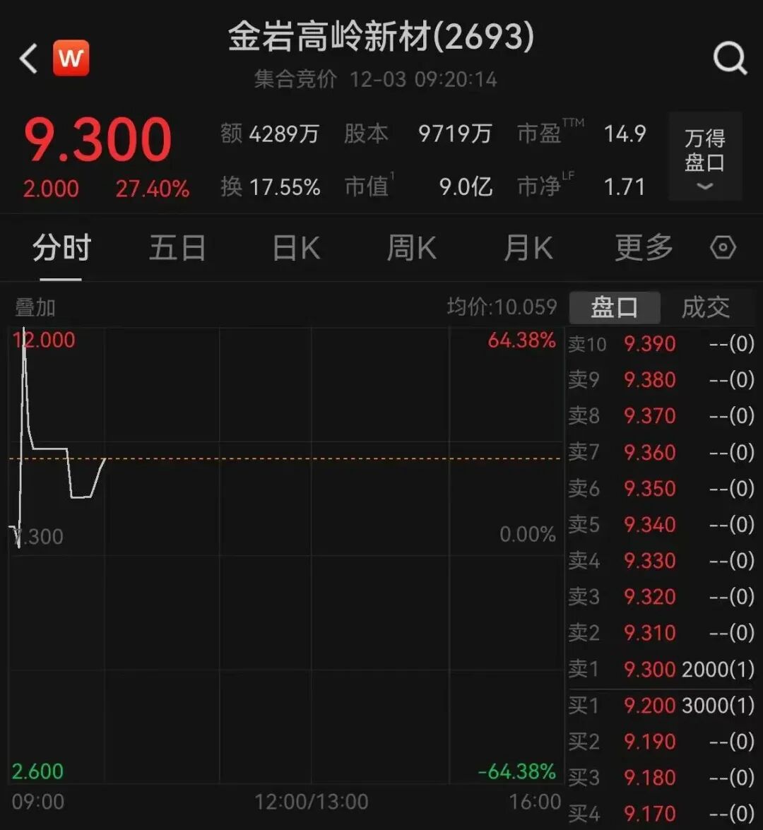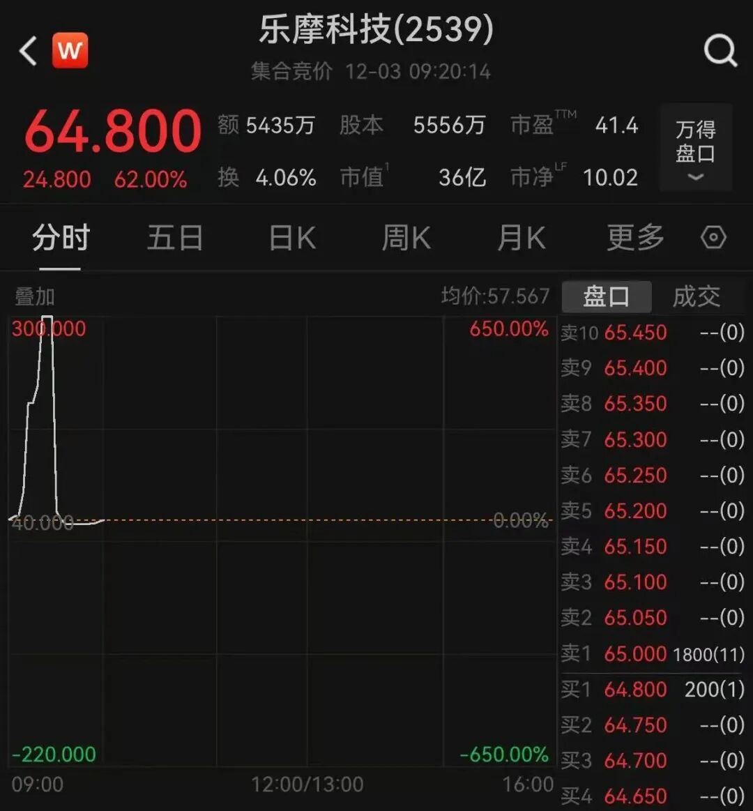 港股新股乐摩科技高开62%,报64.8港元。另一只新股金岩高岭新材开涨27.4%报9.3港元。