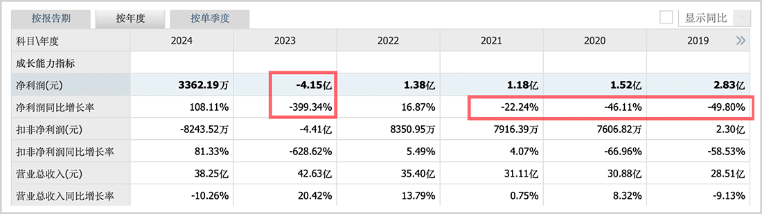 2019年至2021年,贵州百灵净利润均出现下滑,降幅分别高达49.8%、46.11%和22.24%。并在2023年出现上市来首次亏损。