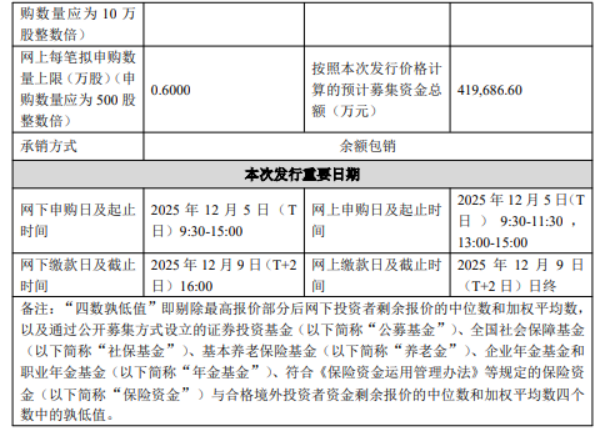 发行人本次募投项目预计使用募集资金为39亿元。按本次发行价格104.66元/股和4010万股的新股发行数量计算,若本次发行成功,预计发行人募集资金总额为41.97亿元,扣除2.98亿元(不含增值税)的发行费用后,预计募集资金净额为38.99亿元。