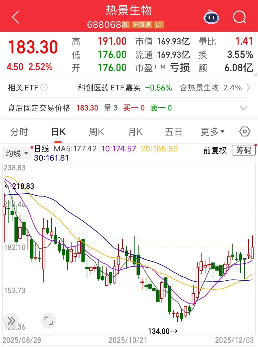这一系列投资计划刺激该公司股价再次上涨。截至12月3日收盘,热景生物股价为183.3元/股,涨幅2.52%。而自2024年9月以来,该公司股价涨幅超900%。