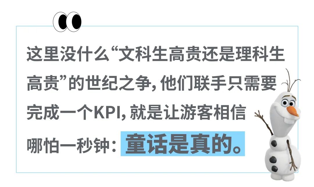 这里没什么“文科生高贵还是理科生高贵”的世纪之争,他们联手只需要完成一个KPI,就是让游客相信哪怕一秒钟:童话是真的。