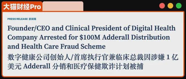 3年时间成功吸引了10万美国人购买,其中43%是学生群体,全美85%的大学生Adderall滥用案例都跟她的公司相关。