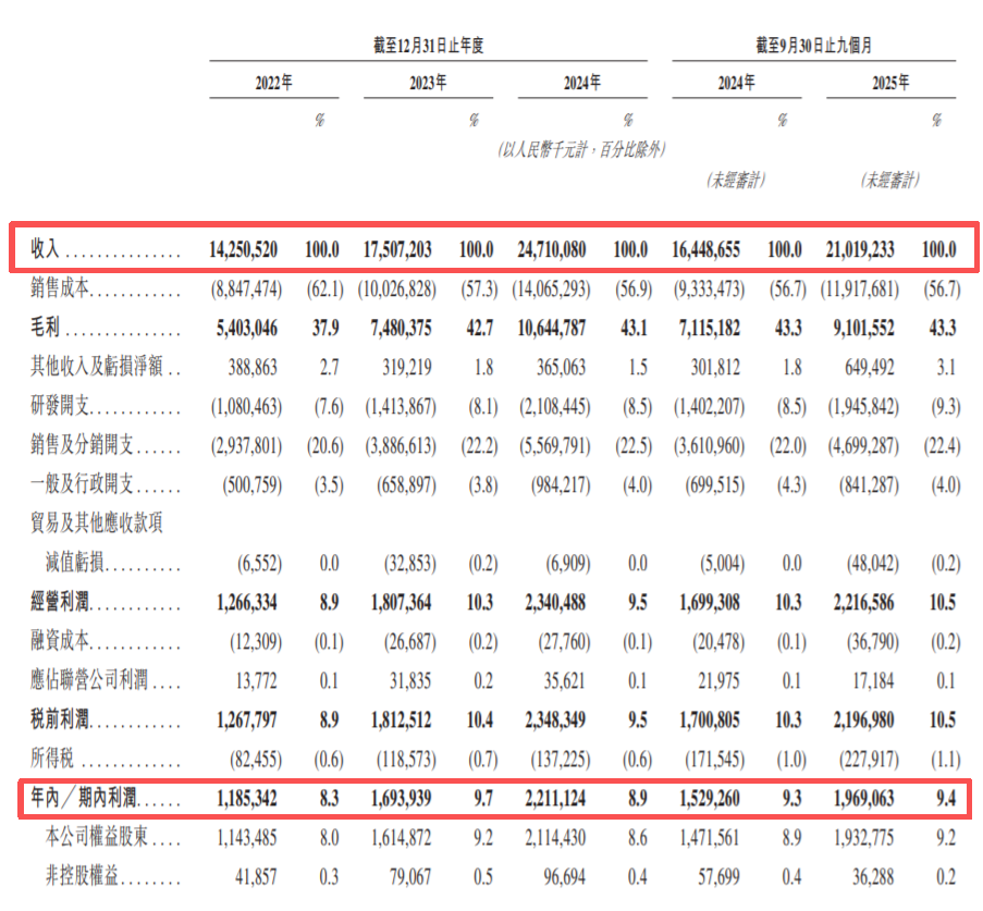 2022年、2023年和2024年,安克创新的营收分别为142.51亿、175.07亿和247.10亿;