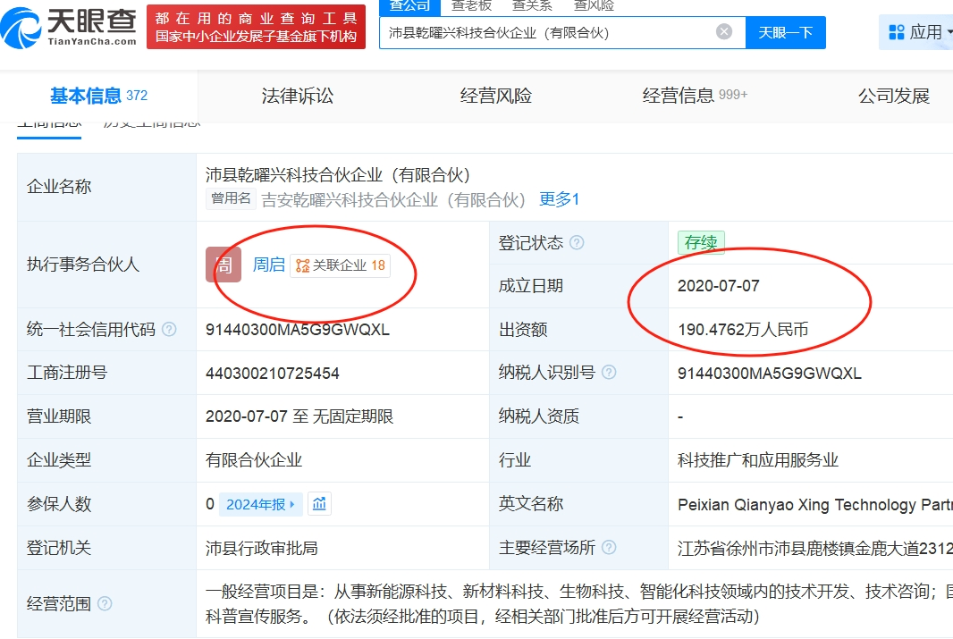 在本次财富盛宴中,有一个独特的存在,沛县乾曜。沛县乾曜的股东之一周启,与老牌显卡厂商七彩虹渊源颇深,而七彩虹早在2000年就与英伟达展开合作。沛县乾曜成立时间只比摩尔线程晚一个月。作为摩尔线程最早的外部投资人,沛县乾曜当时出资190万元。截止12月5日,沛县乾曜持有1699.87万股,按照午间收盘的最新590.59元/股计算,其所持股份估值为100.39亿元,相比于初始投资翻了5283倍。