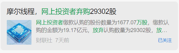 最后,错过摩尔线程的投资者也不必忧虑,另一只国产GPU龙头沐曦股份今日也正式开启申购。沐曦股份是国内高性能通用GPU(图形处理器)领域的领军企业之一,发行价只比摩尔线程低了不到10块钱,上市首日肯定又将上演新一轮“A股造福神话”。