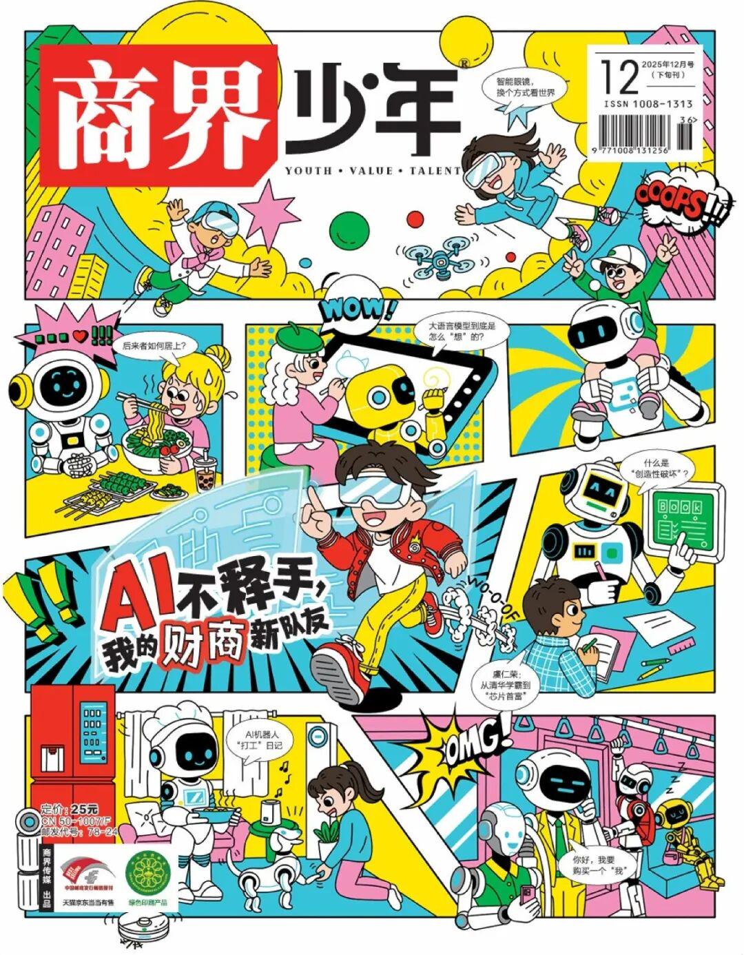 当智能眼镜重构我们看世界的视角,当AI成为形影不离的生活伙伴,当少年们在商战赛场绽放锋芒——《商界少年》2025年12月刊带着满满干货踏冬而来!这里有前沿科技的深度解读,有财商思维的实战指南,有榜样人物的成长密码,更有脑洞大开的商业趣事,让每个少年都能在阅读中拓宽眼界、解锁成长新可能~