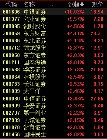 具体来看,大金融板块午后爆发,中银证券、瑞达期货等涨停,中国太保涨近7%。