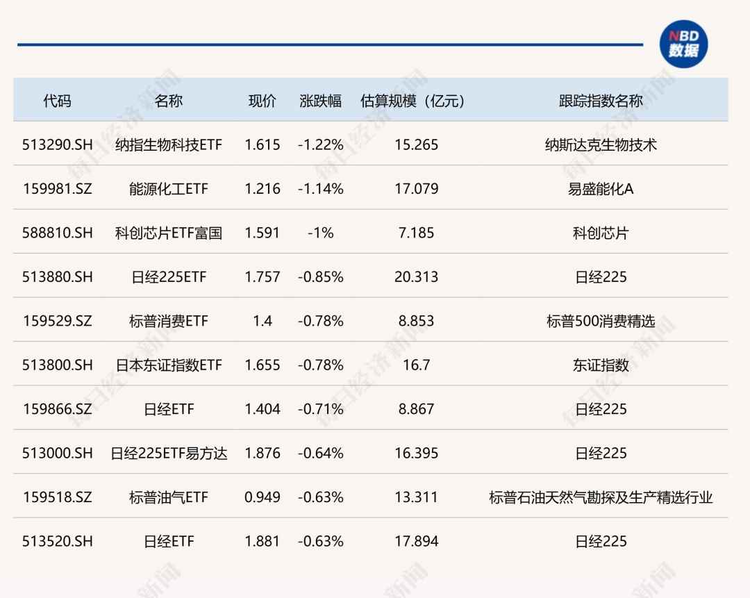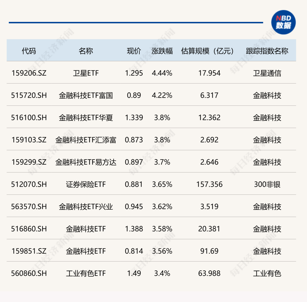 ETF涨跌幅方面,卫星ETF涨超4%,金融科技相关ETF涨超3%。
