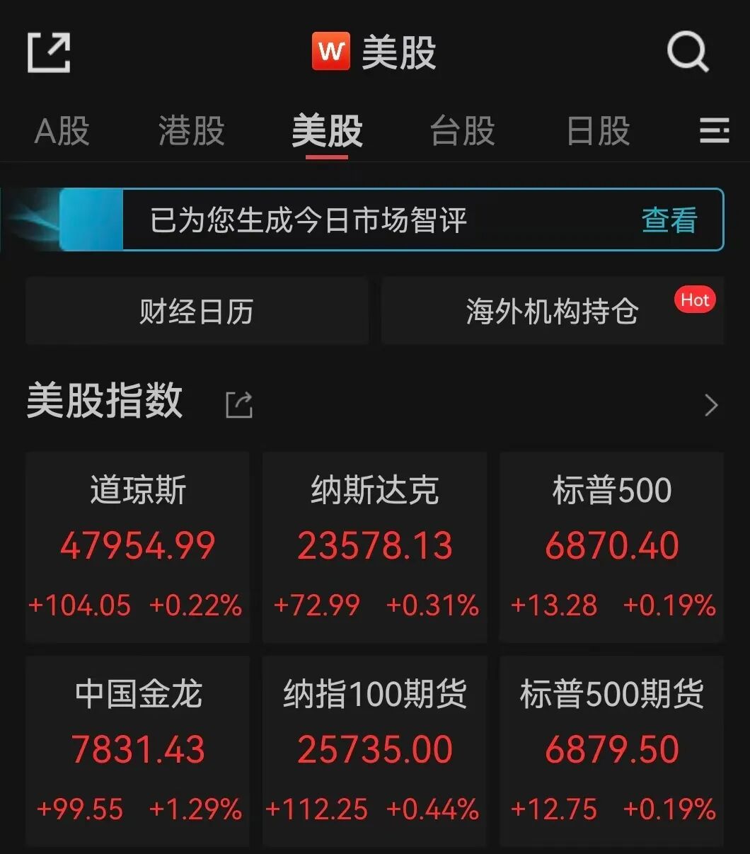 12月5日,美股三大股指齐收涨。截至收盘,道琼斯工业平均指数上涨0.22%,报47954.99点;标普500指数上涨0.19%,报6870.40点;纳斯达克综合指数上涨0.31%,报23578.13点。