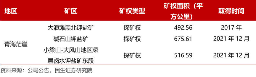 图:藏格矿业在青海茫崖取得的钾盐探矿权。备注:据会计报表附注,探矿权账面价值1.59亿元,未开采前不计提摊销