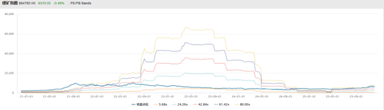 图: 藏格矿业近5年PE-band,24年以来开启拔估值
