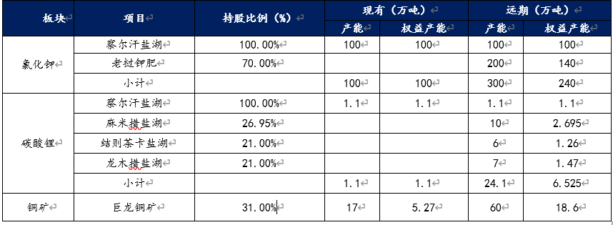 高速发展期(2022年-2024年):2022年,巨龙铜矿投产;2023年,参股结则茶卡、龙木错盐湖(合计权益21.09%),卡位西藏优质盐湖资源;同年,出海布局老挝钾盐矿。