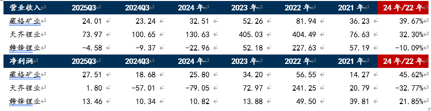 若以2022年为基准进行对比,藏格矿业的相对韧性体现在:2024年净利润较2022年高点下降54%,而同期天齐锂业已陷入深度亏损,赣锋锂业净利润较峰值降幅更高达78%。