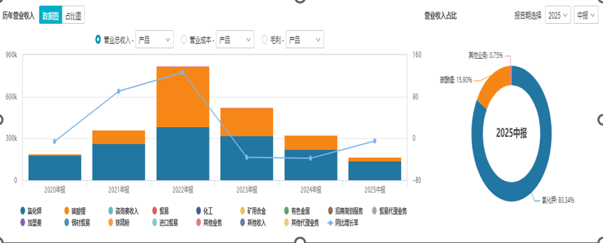 其背后的支撑来自多元化的利润结构。2024年投资收益占利润总额比例已达80.23%。从收入构成看,除2022年外,其余年份钾肥板块的营收与毛利均占据半数以上,构成业绩压舱石。