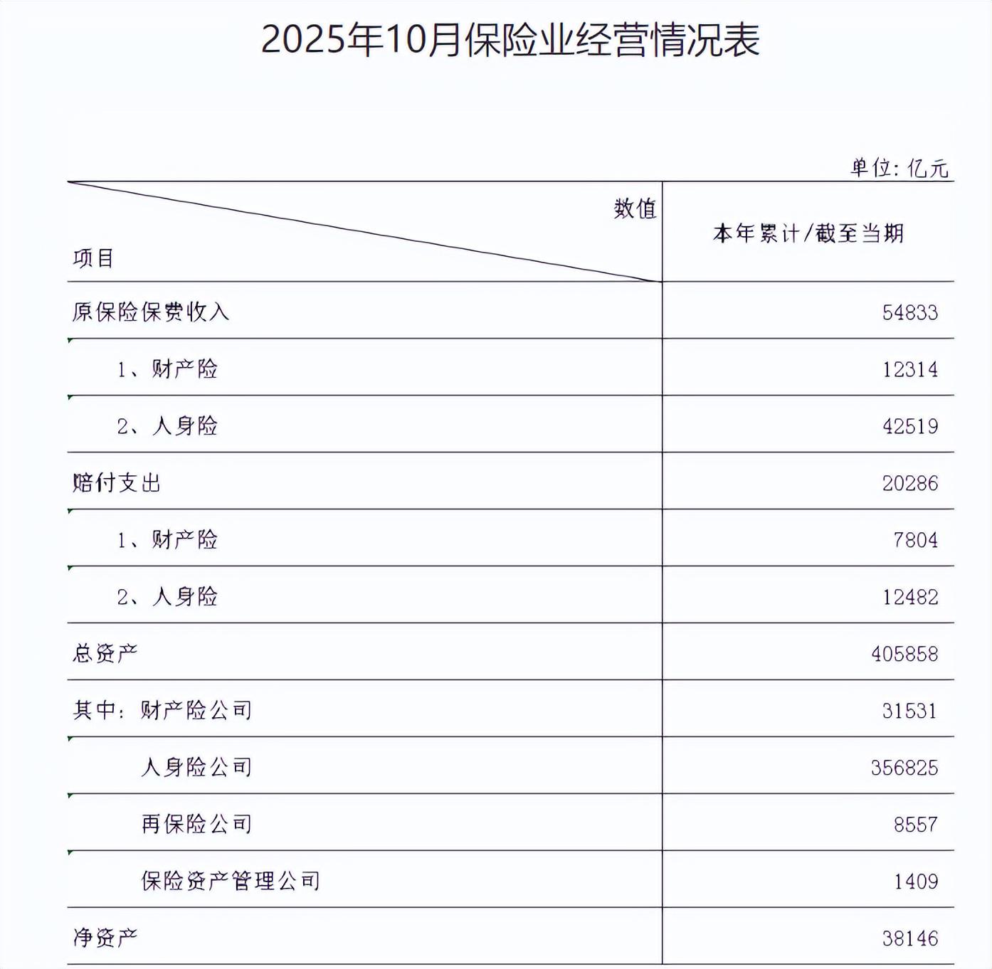 截至2025年10月,我国保险行业保费总收入达5.48万亿元,较去年同期增长8%,延续了平稳有序的发展态势。其中,人身险表现格外引人注目,实现保费收入4.25万亿元,同比增幅达9.63%,在总保费中所占比重高达77.5%;财产险保费为1.23万亿元,增速达2.7%,呈现出稳步上扬的态势。