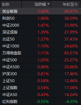 券商的走强,某种意义上增强了市场信心;而盘面上赚钱效应最好的,依旧是泛科技方向,这也让创业板指和科创50指数在主要股指中领涨。