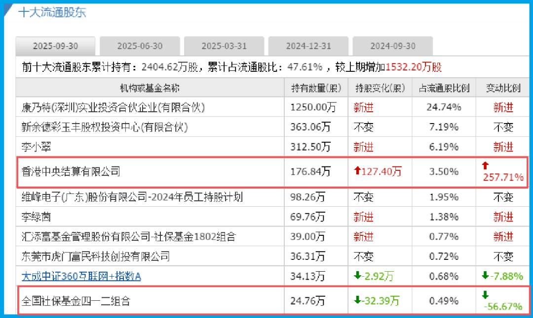 然而,股东名册的变化却极不寻常:香港中央结算有限公司(北向资金)增持幅度高达258%。