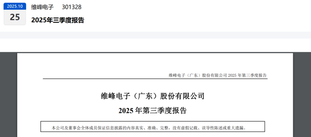 先看公司基本面:维峰电子前三季度业绩8159.92万元,同比增长19.95%。