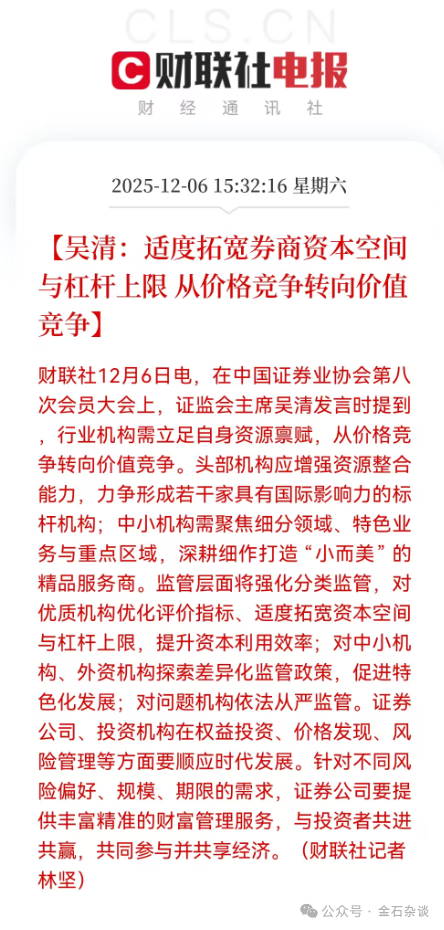 第三重利好,证监会主席吴清在中国证券业协会第八次会员大会上,提出“对优质机构优化评价指标、适度拓宽资本空间与杠杆上限,提升资本利用效率”。这就意味着,对于优质券商机构,可以适度提高杠杆水平,提高资金使用效率。