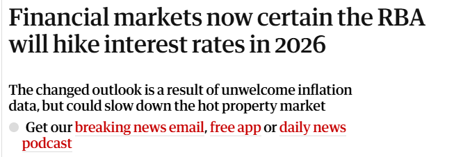 3 金融市场目前已将储备银行在 2026 年加息的概率定为 100%
