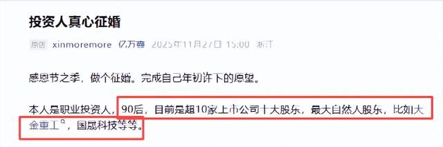 2./ 知名游资公开征婚:“自己是恋爱脑,希望对方也是恋爱脑”/