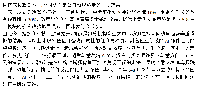 再说说以“易中天”为代表的海外算力,目前有机构认为本周科技股放量拉升是公募新规落地的短期结果,具体大家可以看点评。