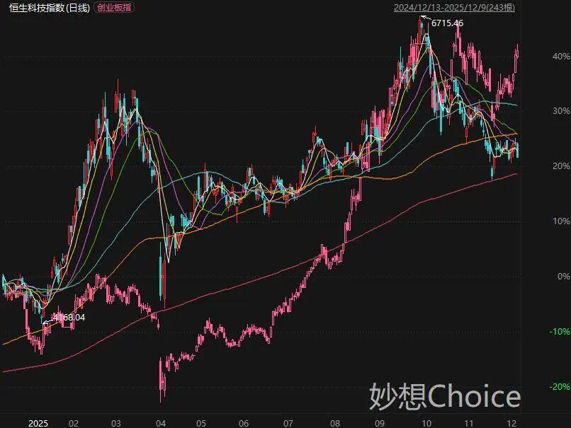 港股最近极其弱势,压根不跟A股,昨天A股大涨,港股不涨,今天A股小幅调整,港股大跌,恒生指数有再次破位的趋势。港股弱势的原因可能有两个:其一,IPO过多,造成严重失血;其二,外资对明年经济预期不高,A股能走强主要靠AI硬件带动,而港股没有。