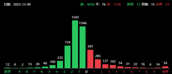昨天有提到,以目前A股的点位,不宜对跨年行情有过高的期待,昨天zzj会议召开,虽然定调相对积极,但市场还是不满意,觉得短期内降息无望、地产也不会有刺激,今天地产链、消费都被砸盘,于是市场就从昨天的普涨变成了今天的科技独苗。