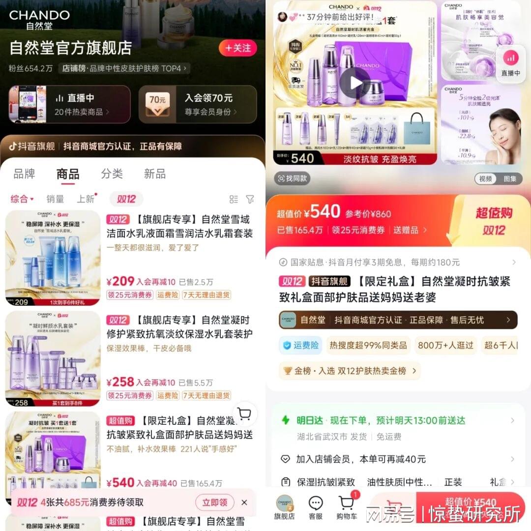 惊蛰研究所发现,虽然所属品类不同,但自然堂与红蜻蜓在布局直播电商时采取了相似的发展路径:从产品入手迎合平台用户需求,再借助直播和短视频触达目标用户。