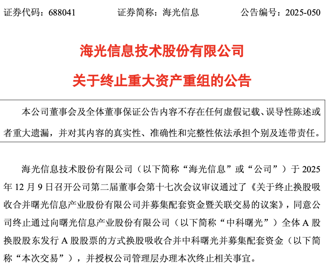 此外,海光信息承诺自终止披露之日起至少1个月内不再筹划重大资产重组事项,并拟于2025年12月10日召开投资者说明会,就终止事项与投资者交流。