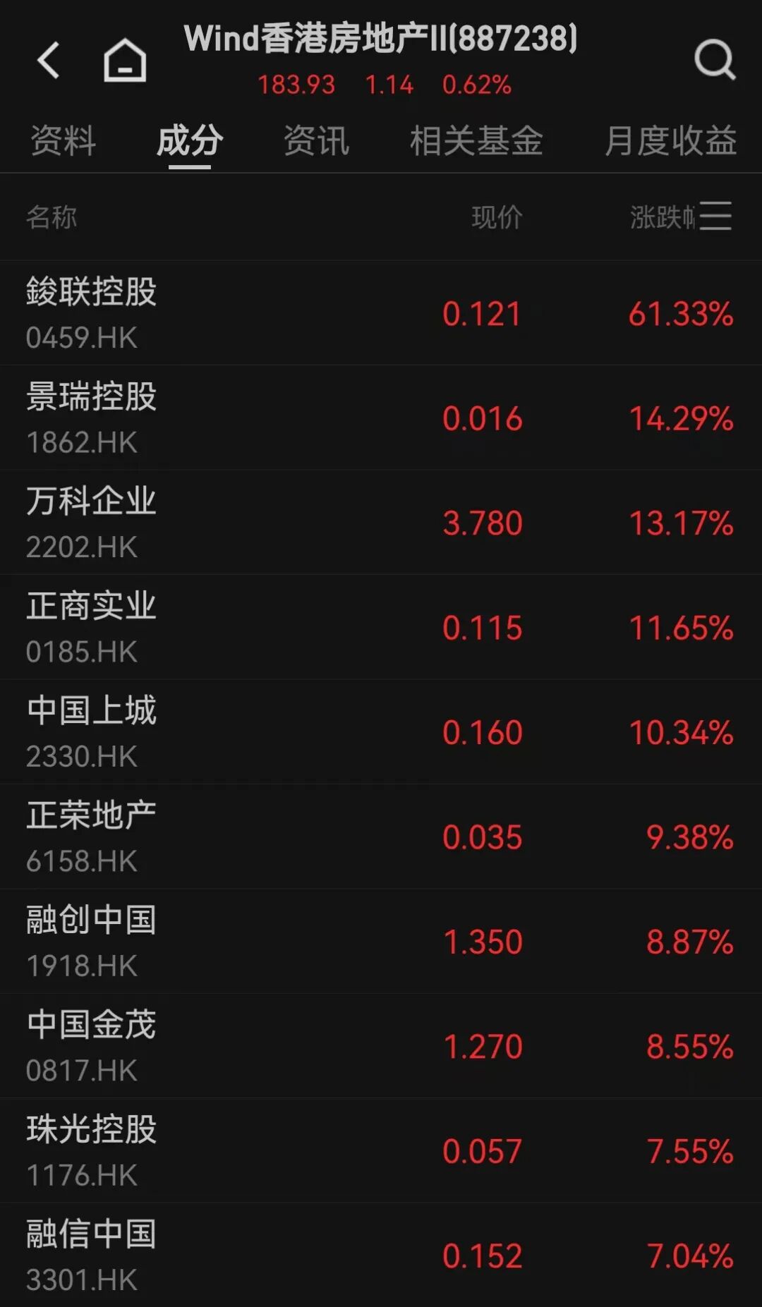 内房股走高,万科企业涨超13%,正荣地产涨超9%,融创中国涨超8%,融信中国涨超7%。