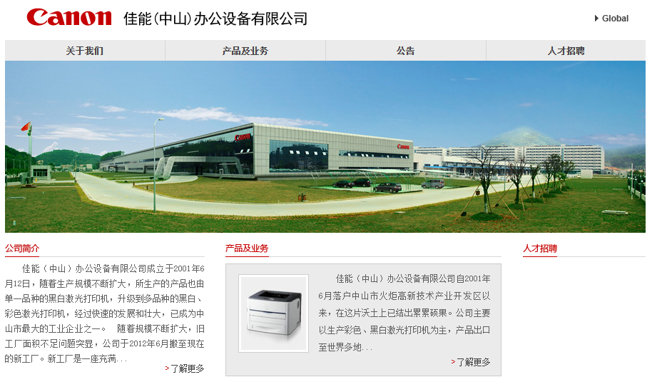 中山佳能成立于2001年,是日本佳能株式会社在广东中山设立的全资子公司,主要生产多种激光打印机。