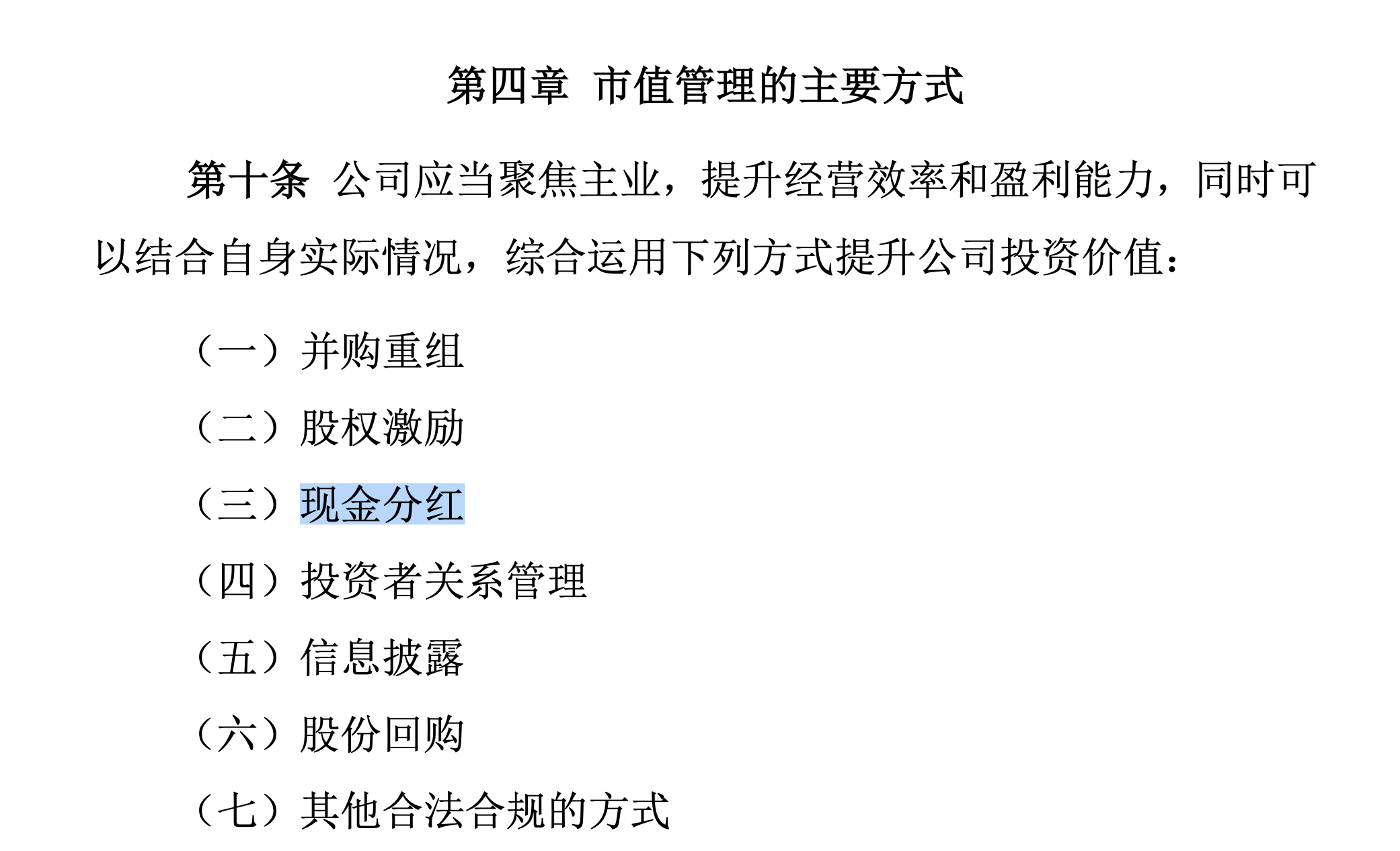 以五粮液为例,今年3月份,公司发布《市值管理制度》表示,公司应当聚焦主业,提升经营效率和盈利能力,同时可以结合自身实际情况,综合运用“并购重组”“股权激励”“现金分红”等方式提升公司价值。