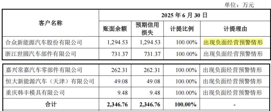 2022年-2025年1-6月,公司信用减值损失分别为-1,333.70万元、-578.79万元、-2,469.29万元和-782.08万元。2024年,应收账款坏账损失为-2,533.62万元,主要系因哪吒汽车车型项目相关客户相关应收账款单项计提预期信用损失。