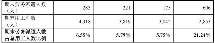 劳务派遣曾超标至21.24%,直接材料成本占比高