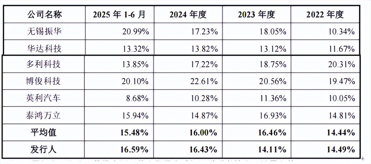 2022年-2025年1-6月,至信股份主营业务毛利率分别为14.49%、14.11%、16.43%和16.59%,同行业可比公司主营业务毛利率平均为14.44%、16.46%、16.00%和15.48%。从主营毛利率增幅看,跟净利润增幅并不匹配。