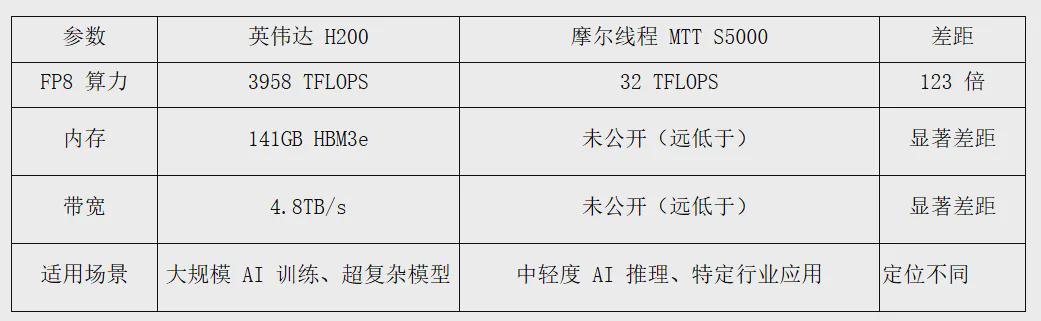 仔细分析,英伟达和摩尔线程其实并不在同一赛道。据“专利创新魔方”分析:“H200与摩尔线程产品不存在直接竞争关系,它们服务的市场层次有明显差异。摩尔线程曾在IPO问询中明确表示,H20 系列(英伟达性能受限版)与公司最新产品不构成直接竞争,更不用说性能更强的H200 了。”