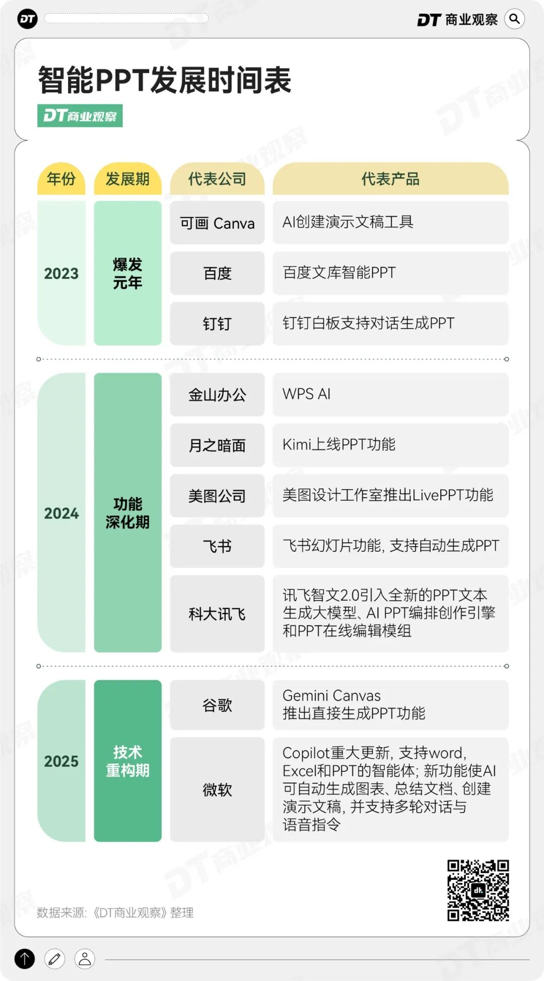 在这个赛道上,Kimi、美图、飞书、钉钉、WPS等多个厂家相继推出智能PPT产品。
