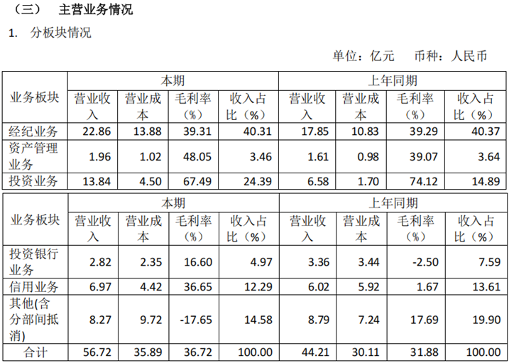 《每日财报》注意到,国投证券的业绩增长源自经纪业务和投资业务推动。今年上半年,经纪业务收入为22.86亿元,同比增长28.12%;投资业务收入为13.84亿元,同比增长110.17%。