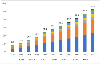 全球母乳低聚糖市场规模数据来源:卓创咨询