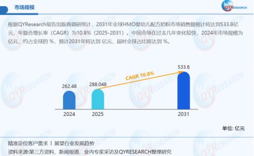 截至2025年3月,受访消费者对HMO的关注度达到了73.49%,添加HMO的种类和数量已经成为相关产品差异化的卖点之一。更直接推动了全球HMO市场规模在2024年达到约24.4亿元,并预计将以13.3%的年复合增长率高速扩张。