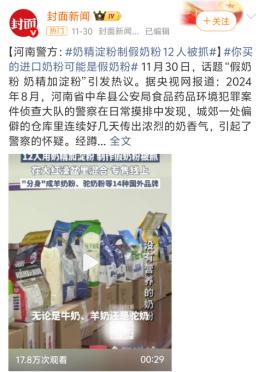 11月,央视曝光的河南“假奶粉”案件,再次以尖锐的方式,刺中了国民食品安全那根最敏感的神经。犯罪团伙在脏乱差的出租屋内,用植脂末(奶精)、麦芽糊精等廉价原料勾兑,通过伪造14种进口奶粉包装,制售毫无营养成分的假奶粉。类似“奶精加淀粉”的假奶粉已通过电商平台销往全国25个省份,形成了一条完整的黑色产业链。