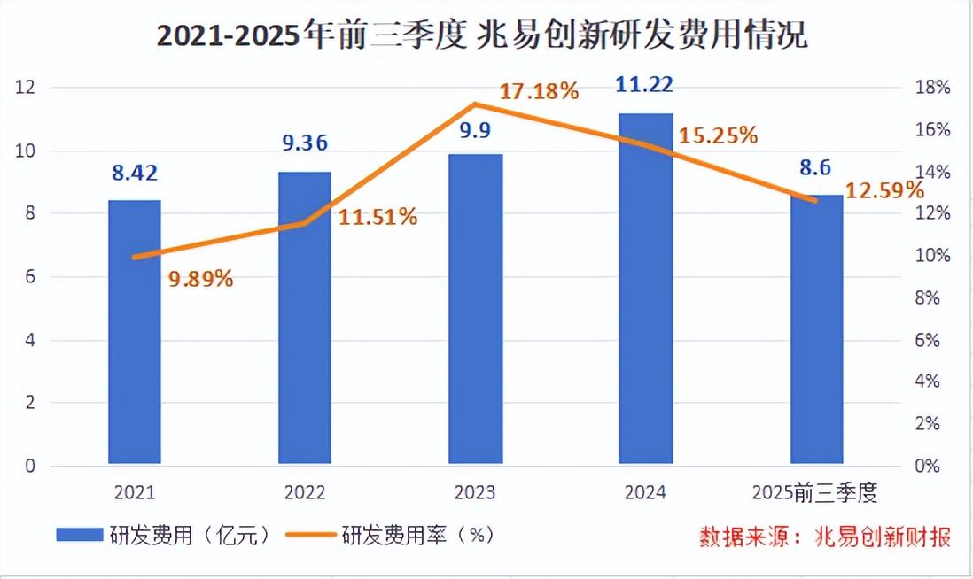 自此,研发费用只增不减。截止2025年第三季度末,过去四年多的时间里,公司累计研发投入高达47.5亿元,平均研发费用率维持在13.3%的高水平。